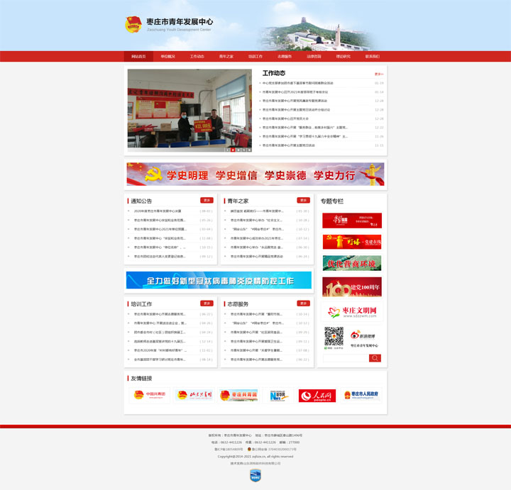 棗莊市青年發(fā)展中心的前身為棗莊市團校,成立于1981年,是一所以培養(yǎng)共青團干部和青年人才為主業(yè)的青年干部培訓學校。坐落于棗莊市薛城區(qū)泰山路,占地20余畝,建筑面積12000平方米。 建校以來,在上級黨團組織的關(guān)心和支持下,我們始終堅持正確的辦學方向,以培養(yǎng)具有較高理論素養(yǎng)和工作能力的青年人才為己任,銳意創(chuàng)新、積極進取,全面落實服務(wù)大局、服務(wù)社會、服務(wù)青少年的各項任務(wù);緊密結(jié)合廣大團員青年的學習需求,不斷創(chuàng)新培訓模式,充分發(fā)揮陣地作用,創(chuàng)造性地組織開展了形式新穎、內(nèi)容豐富的培訓活動;采取長短結(jié)合、內(nèi)外結(jié)合、與經(jīng)濟發(fā)達地區(qū)聯(lián)合等多種形式,不斷拓寬辦學領(lǐng)域,擴大辦學規(guī)模,提高辦學質(zhì)量,先后舉辦了職業(yè)中專班、軍地人才班和成人學歷班;不斷豐富工作內(nèi)容,提升培訓質(zhì)量,逐步形成了以團干部培訓為主,青少年研究、青少年素質(zhì)拓展、青年志愿者培訓、成人學歷教育,“四位一體”的辦學格局。 2003年3月團市委在市團校設(shè)立“棗莊市青春創(chuàng)業(yè)指導中心”;2004年9月,棗莊電大市團校分校成立;2005年6月團市委在市團校設(shè)立全市首批“學士后流動站”;2010年初在北京大學的幫助與指導下,市團校成立了青少年素質(zhì)拓展培訓基地。同時,市團校積極響應(yīng)市委、市政府號召,圍繞中心、服務(wù)大局,充分發(fā)揮自身優(yōu)勢,配合市、區(qū)農(nóng)業(yè)局、勞動局,先后承擔了農(nóng)村勞動力轉(zhuǎn)移、“陽光工程”培訓班。 三十多年來,市團校完成了25000余名團干部和3000余名大中專學生的教學培訓任務(wù),向蘇州、上海、煙臺等經(jīng)濟發(fā)達地區(qū)輸送高素質(zhì)的青年勞務(wù)人員近1000人,累計培訓各類青年農(nóng)民1500人次,開設(shè)中央電大“開放教育”本、?茖I(yè)20多個,學員近1000人,開展素質(zhì)拓展培訓5000余人,成功舉辦兩屆全市青年攀巖比賽,受到了社會各界的一致好評。 2017年3月,棗莊市“青年之家”在市團校建成投入運行,設(shè)置法律維權(quán)、心理咨詢、婚戀交友、志愿服務(wù)、傳統(tǒng)文化教育和素質(zhì)拓展六大模塊,是棗莊共青團面向社會、面向青少年的多功能、復(fù)合型、綜合性服務(wù)平臺,是團組織使用管理的公益性、綜合性服務(wù)場所。 2017年8月,棗莊市團校更名為棗莊市青年發(fā)展中心。展望未來,我們信心百倍,全體教職工將繼續(xù)圍繞黨政中心工作大局,以更加奮發(fā)有為的精神狀態(tài),開拓進取、奮力拼搏,立身自身實際,發(fā)揚優(yōu)良傳統(tǒng),在新的征程上邁出新步伐,再上工作新臺階,再創(chuàng)事業(yè)新輝煌。