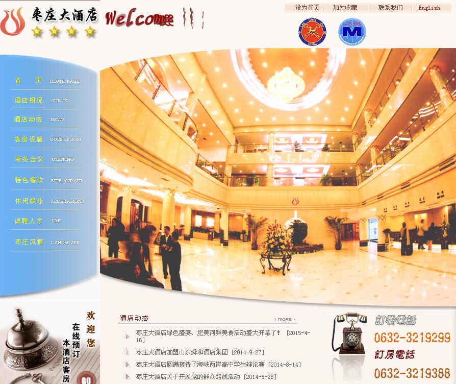 動需要;酒店還設立了康樂中心、KTV歌廳、美容美發(fā)、酒吧茶座、購物商場、旅游服務等配套服務項目。整個酒店全部配設了先進的中央空調系統(tǒng)、程控電話系統(tǒng)、互聯(lián)網(wǎng)絡系統(tǒng)、有線視頻系統(tǒng)、自動消防系統(tǒng)、安全監(jiān)控系統(tǒng)、冷熱水供應系統(tǒng)。酒店地處繁華商業(yè)區(qū),毗鄰長途汽車站,近靠各大景點景區(qū),交通、購物、游覽極為方便,實為中外賓客的佳選擇。 棗莊大酒店是棗莊市旅游服務行業(yè)的典范企業(yè),是山東省旅游服務系統(tǒng)的知名酒店。目前,酒店已獲得“山東省優(yōu)秀星級飯店”、“山東省誠信旅游示范單位”、“山東旅游細微化服務示范企業(yè)”、“省級旅游消費信得過單位”、“山東省服務名牌”、“中國綠色旅游飯店”、“世界金鑰匙組織中國區(qū)成員”等多項榮譽與資質,是山東省質監(jiān)局推薦的服務標準化示范單位;2007年,酒店通過了ISO9001質量管理體系認證。 棗莊大酒店有限責任公司董事長、總經理張茂安先生攜全體酒店員工,熱忱歡迎中外賓客光臨下榻! |