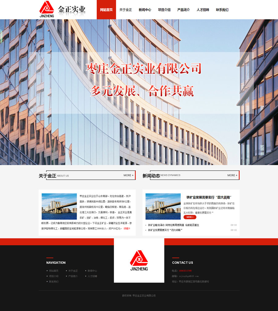 祝賀金正實(shí)業(yè)有限公司網(wǎng)站上線 訪問地址:http://www.jinzhengshiye.com/ 公司介紹: 棗莊金正實(shí)業(yè)位于山東南部。處在京臺(tái)高速、京滬高鐵、津浦鐵路中間位置,距鐵路專用貨場5公里,距徐州觀音機(jī)場70公里,毗臨日照港、青島港、連云港三大出海口,交通便利、快捷。 金正實(shí)業(yè)是集采礦、選礦、冶煉、煤化工、投資、貿(mào)易為一體不斷發(fā)展,已成為魯南地區(qū)較有影響力的大型企業(yè)。下設(shè)金正礦業(yè)、新疆雙全五洋能源、并參股伊犁特煤化工、新疆國投寶地能源等公司,F(xiàn)有職工3000余人,資產(chǎn)20億元。先后獲得棗莊百強(qiáng)企業(yè)、突出貢獻(xiàn)企業(yè)、誠信經(jīng)營企業(yè)、納稅十強(qiáng)企業(yè)、山東省工會(huì)工作先進(jìn)企業(yè)等榮譽(yù)稱號(hào)。 金正礦業(yè)年產(chǎn)鐵精粉60萬噸,金正實(shí)業(yè)年產(chǎn)鑄造用生鐵26萬噸,主要銷往江蘇、浙江、福建、安徽、河北、山東等地,深受廣大客戶好評(píng)。 公司始終秉承“多元發(fā)展、合作共贏”的經(jīng)營理念,遵循“精誠團(tuán)結(jié)、銳意進(jìn)取”的企業(yè)精神。竭誠為客戶提供優(yōu)質(zhì)的產(chǎn)品和服務(wù)。真誠歡迎各界同仁前來指導(dǎo)、合作,我們?cè)概c您風(fēng)雨同舟、攜手共創(chuàng)美好未來。
