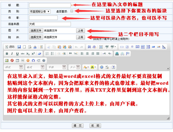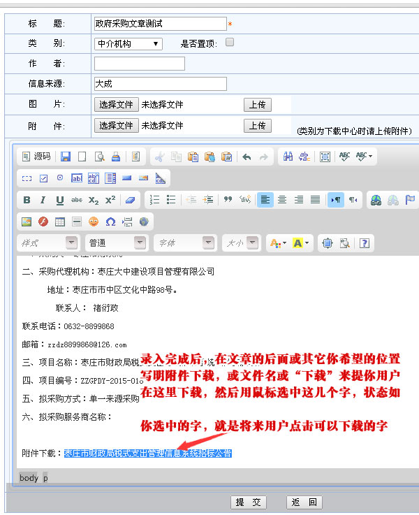 根據(jù)上圖完成編輯后,直接可以把各種文檔以附件方式上傳,以方便用戶下載瀏覽。就能完成文章的發(fā)布。下面說(shuō)下附件的上傳辦法。