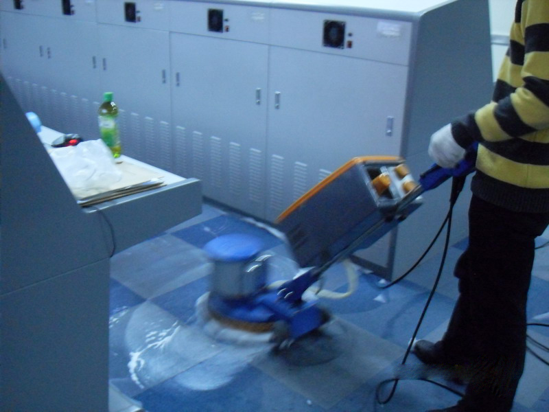 5、用裝有打泡器、地毯刷的單盤掃地機(jī),以干泡刷洗地毯